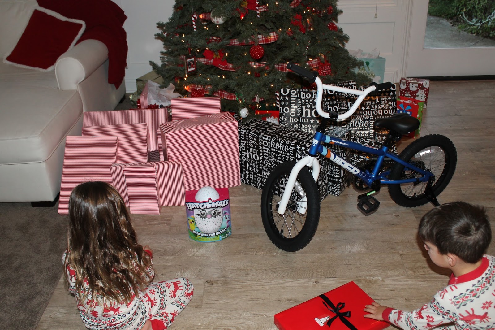 Christmas morning was magical like always. The kids ran down and opened up presents in such a quickest it was all over in a matter of minutes. This year Santa brought Madden a bike and Skylar a Hatchimal. Both what they requested. Madden was a bit disappointed when he came down and saw that his bike didn't have the color green in it, but he got over that pretty fast. We all helped hatch Skylar egg which took longer than anything else. Madden wouldn't even open up a box that he knew was clothes, he would just had to to me and say "clothes," and be on to the next.